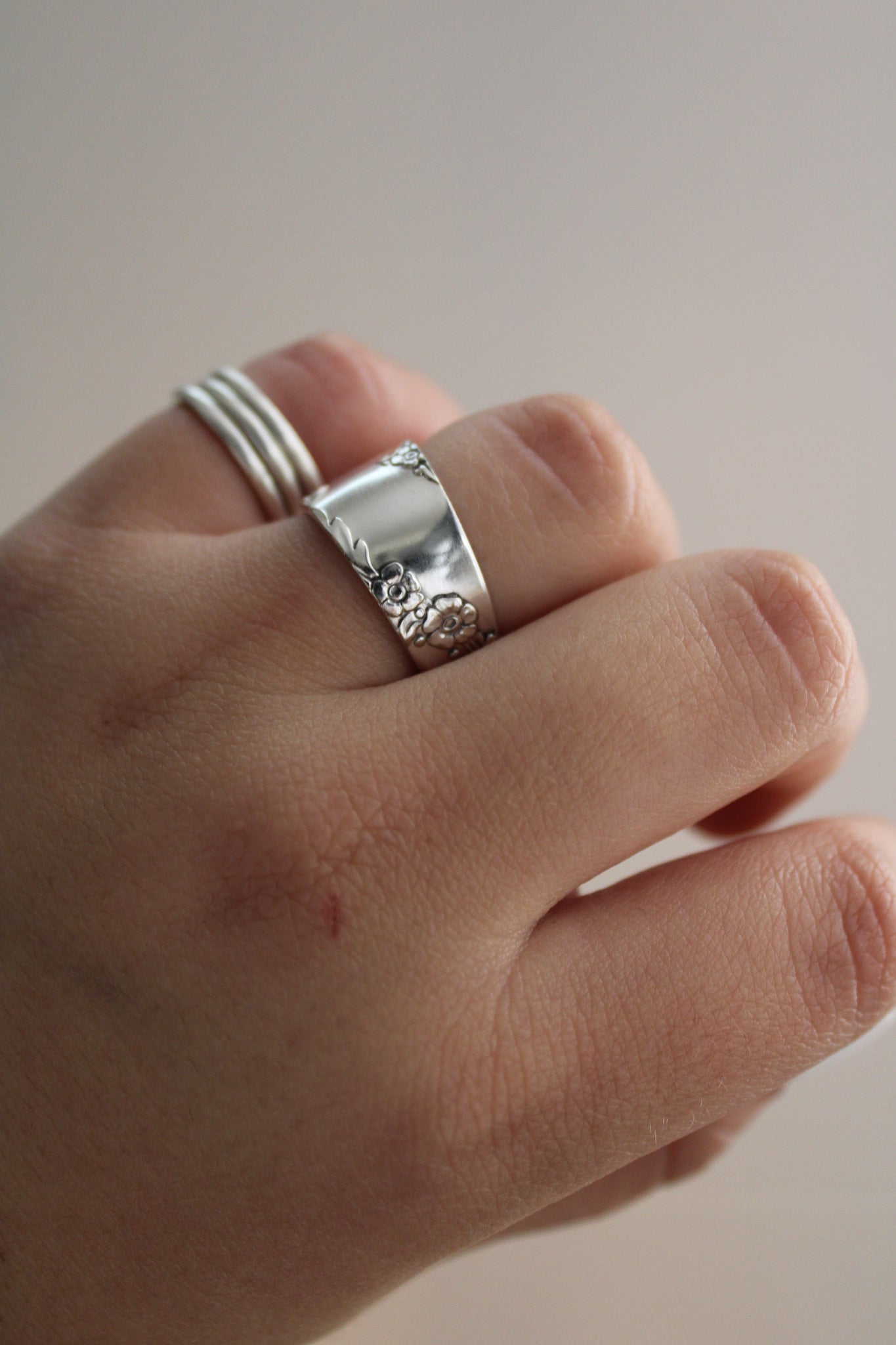 Handmade from vintage silver-plated flatware, these rings bring timeless charm to your collection. Each ring comes with a polishing cloth and anti-tarnish tab to help maintain its shine. The rings are pre-made and non-adjustable, so please double check your size before purchasing. Small scratches or marks may remain from the material’s previous life, adding a touch of authenticity and history to every ring.