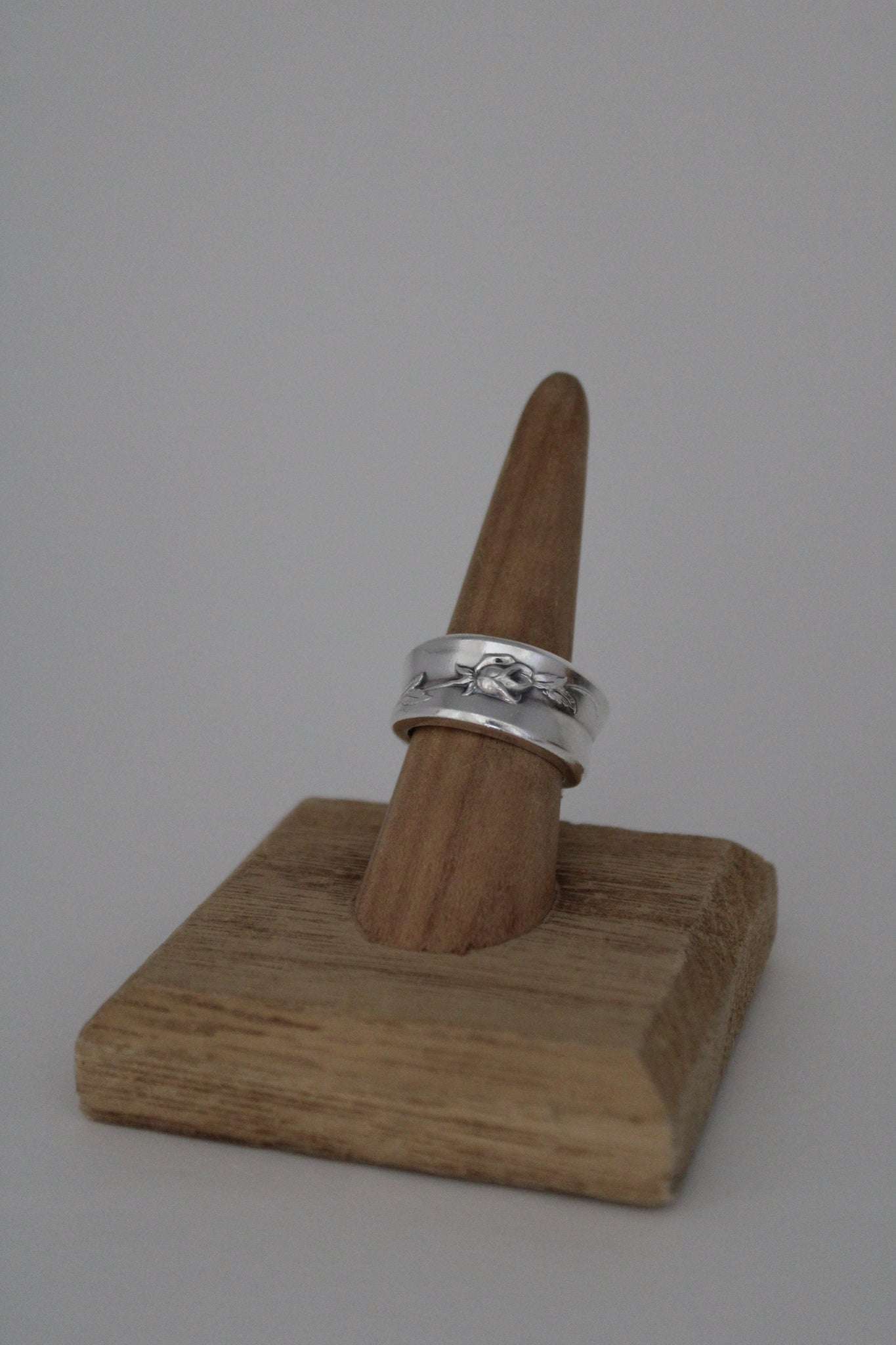 Handmade from vintage silver-plated flatware, these rings bring timeless charm to your collection. Each ring comes with a polishing cloth and anti-tarnish tab to help maintain its shine. The rings are pre-made and non-adjustable, so please double check your size before purchasing. Small scratches or marks may remain from the material’s previous life, adding a touch of authenticity and history to every ring.