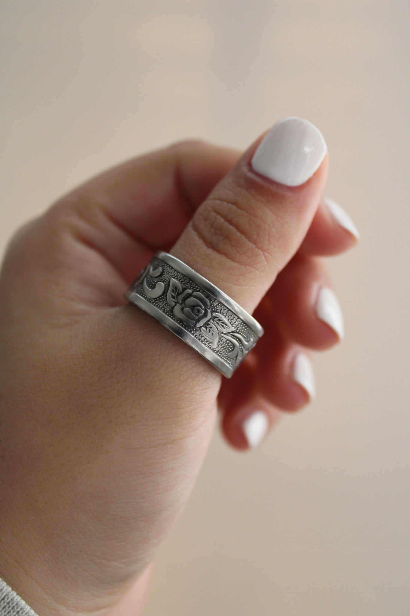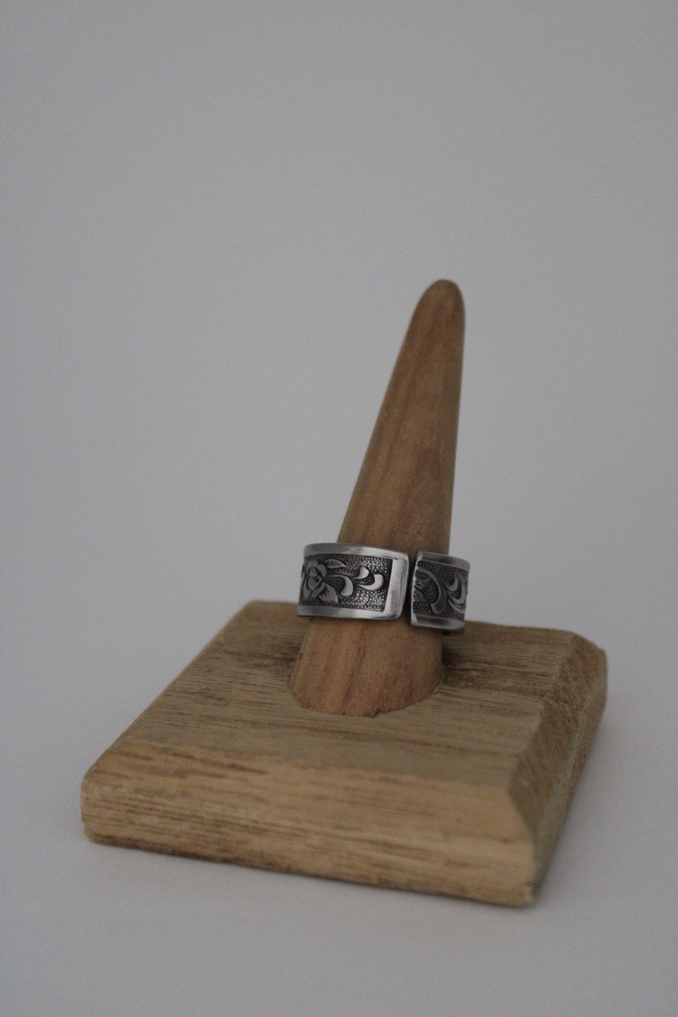 Crafted from preloved stainless steel flatware, these rings are durable and perfect for everyday wear. Resistant to tarnishing and safe to wear in water, they won’t discolor or turn your fingers green. Each ring is pre-made, non-adjustable, and designed to last. Please double-check your size before ordering. Minor scratches or imperfections may be present, reflecting the history of the material and adding unique character to each piece.