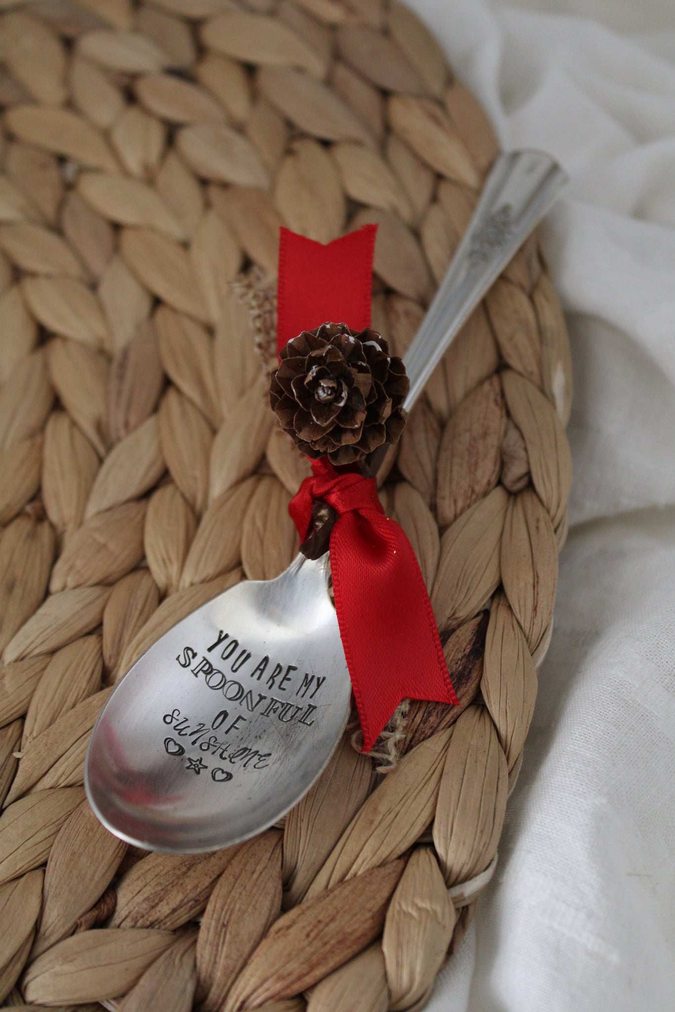 Add a little personality to your kitchen with these hand-stamped vintage spoons. Each one is cleaned, polished, and individually stamped by hand, so every spoon has its own unique charm. They’re made from real vintage flatware, which means signs of age make each piece even more special.