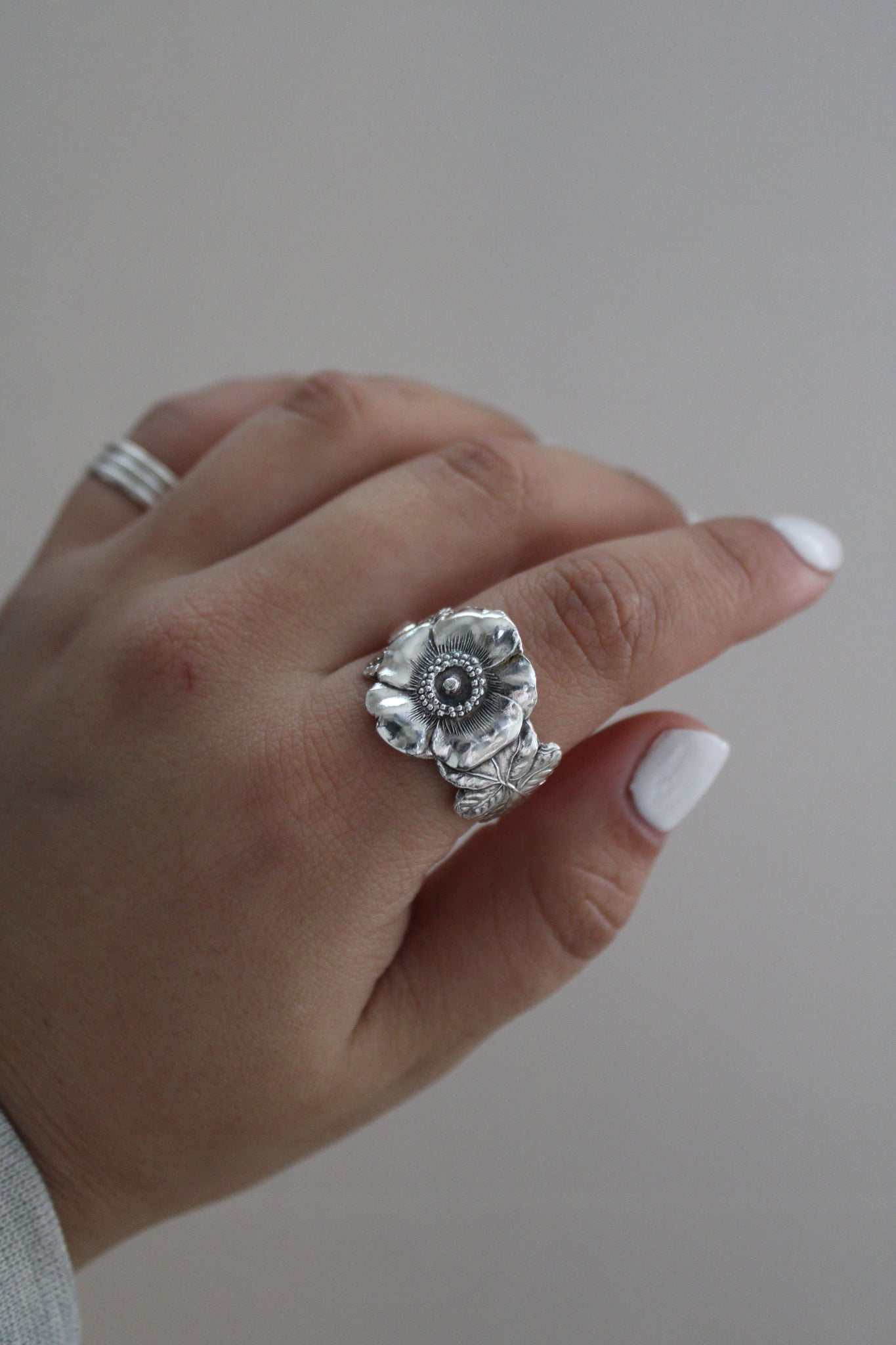 Handmade from vintage silver-plated flatware, these rings bring timeless charm to your collection. Each ring comes with a polishing cloth and anti-tarnish tab to help maintain its shine. The rings are pre-made and non-adjustable, so please double check your size before purchasing. Small scratches or marks may remain from the material’s previous life, adding a touch of authenticity and history to every ring.